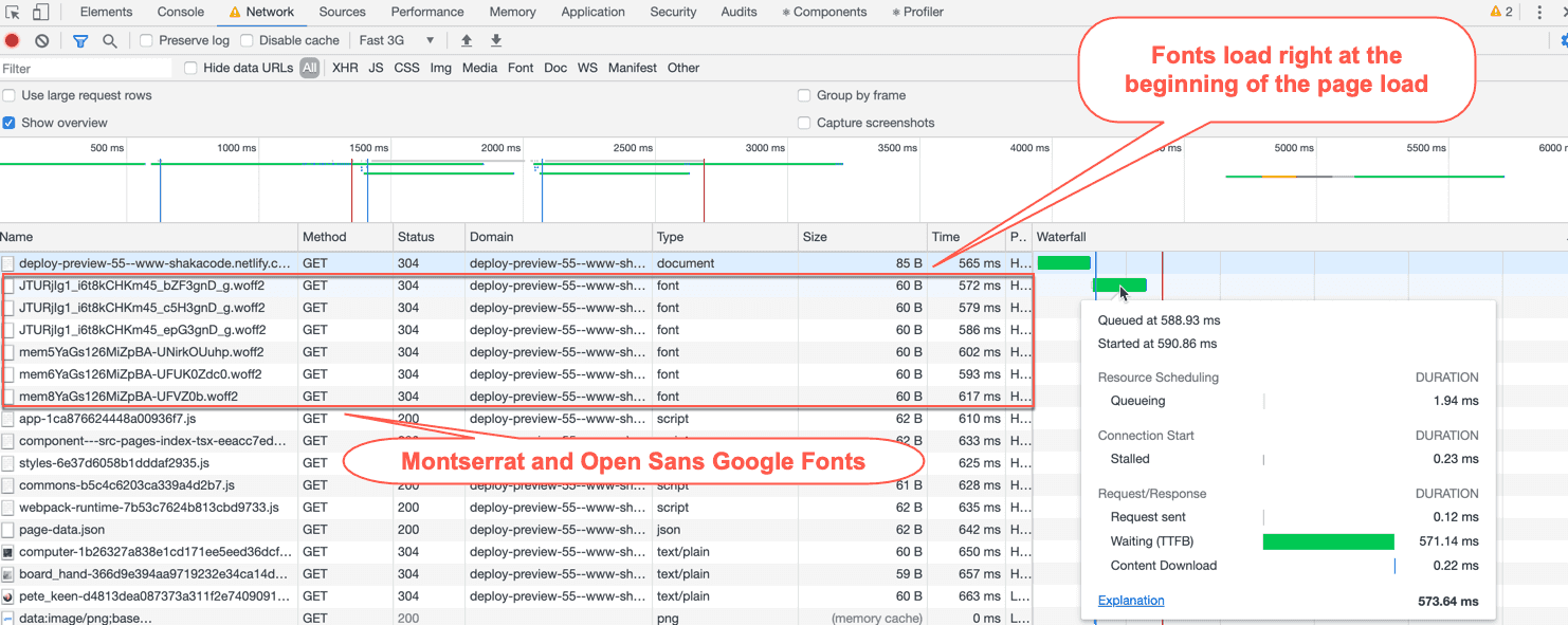 While doing some work to update React on Rails for Loadable-Components, I was going through this excellent tutorial on Preload critical assets to improve loading speed. Part of the tutorial included some experimentation with fonts and preloading.